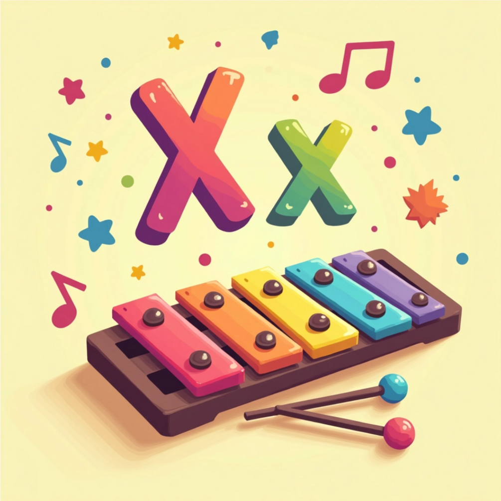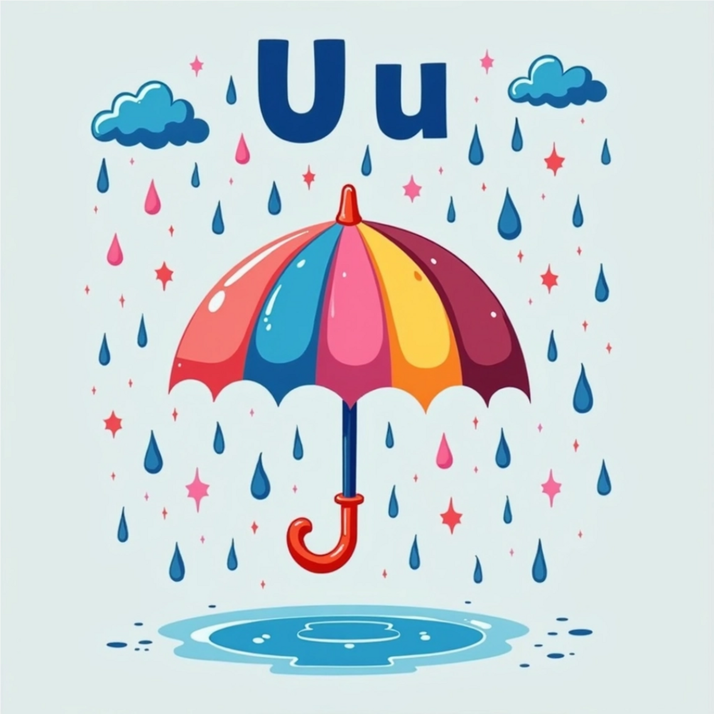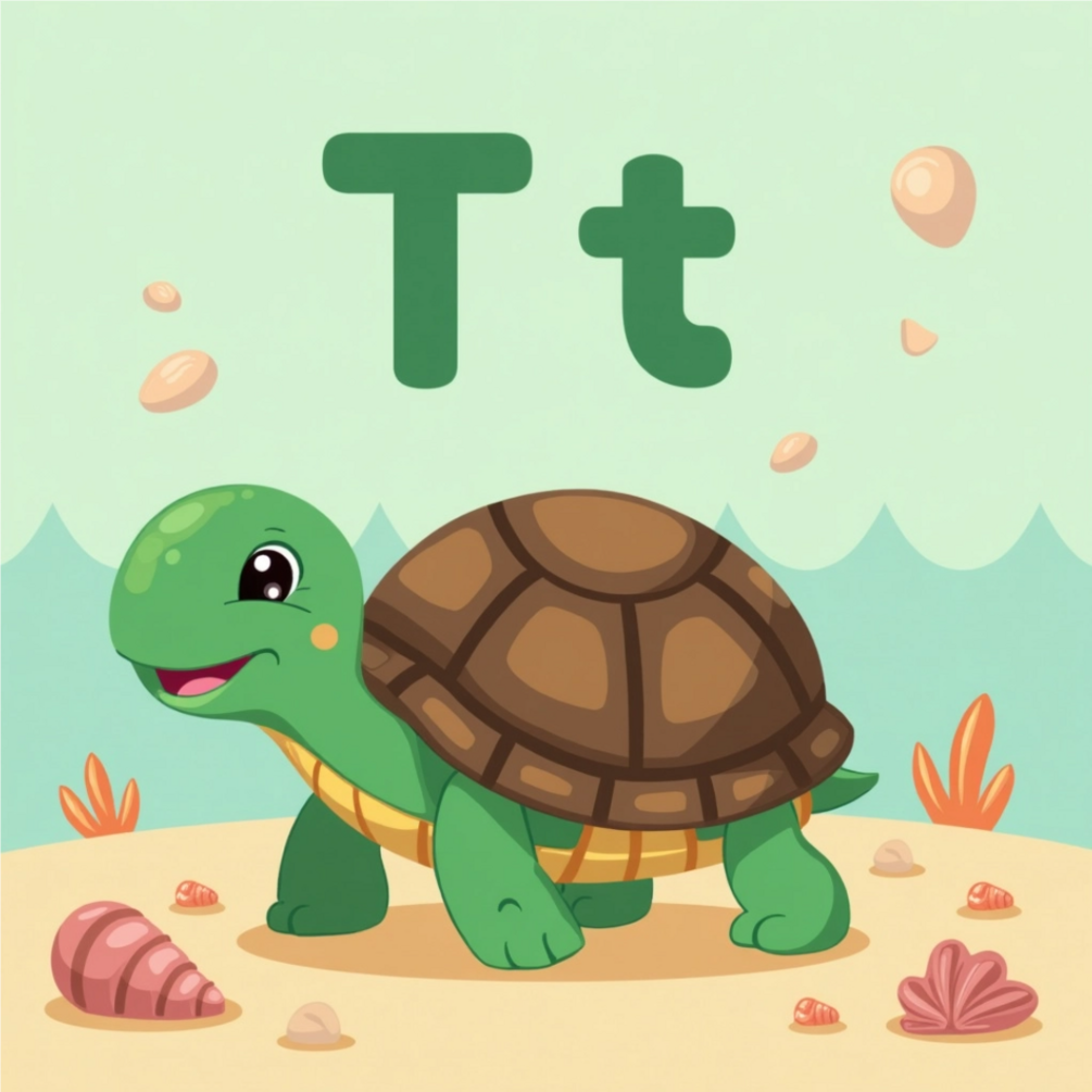 - A vibrant cartoon illustration (e.g., apple, ball, cat)